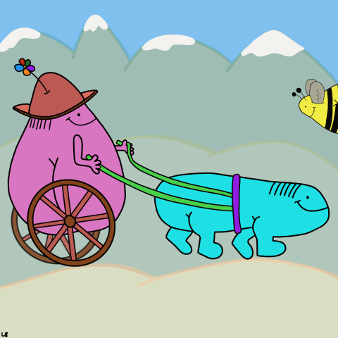 There are many kinds of Bum Man and they travel in different ways. Some have legs, some have wheels, some have propellers, and some rely on friends to help them get around.